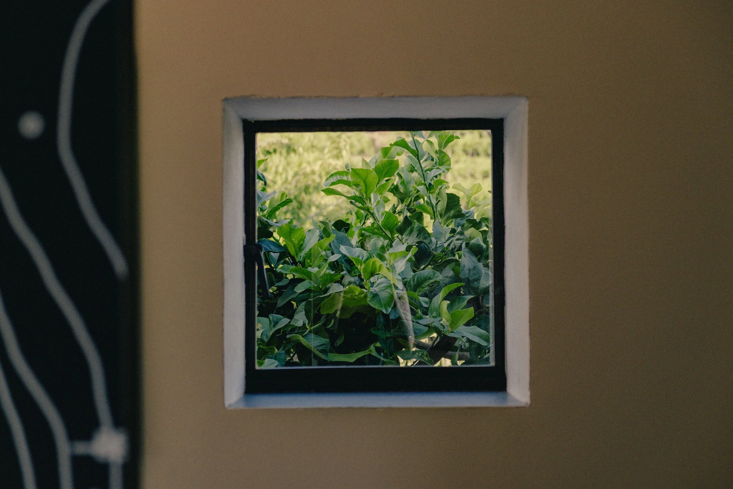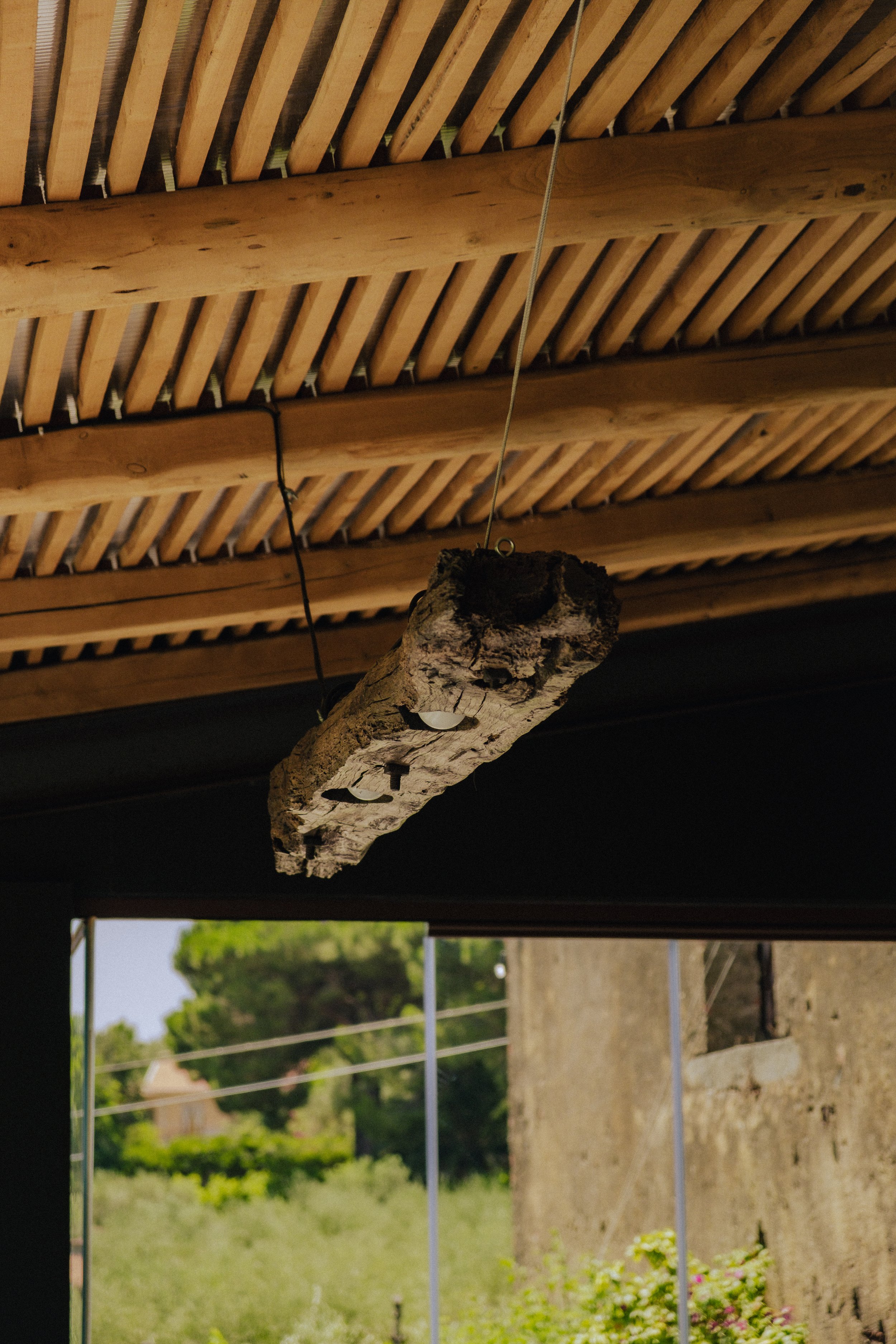 After several sketches, we landed on a semi-abstract illustration of the ceiling over the kitchen and dining space. The long planks of wood bears a similarity to the rays of the sun, casting lovely stripe shaped shadows over the deck.