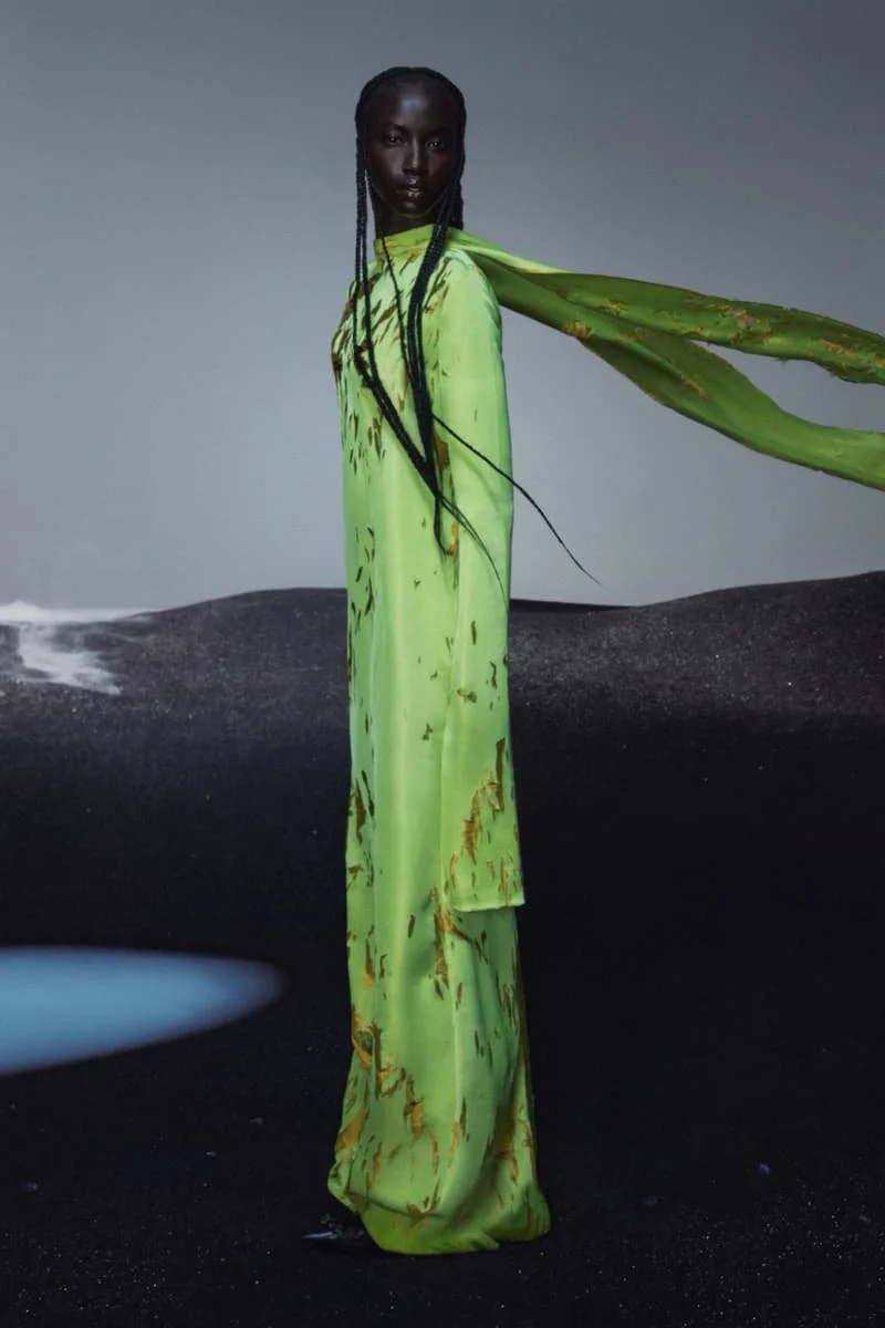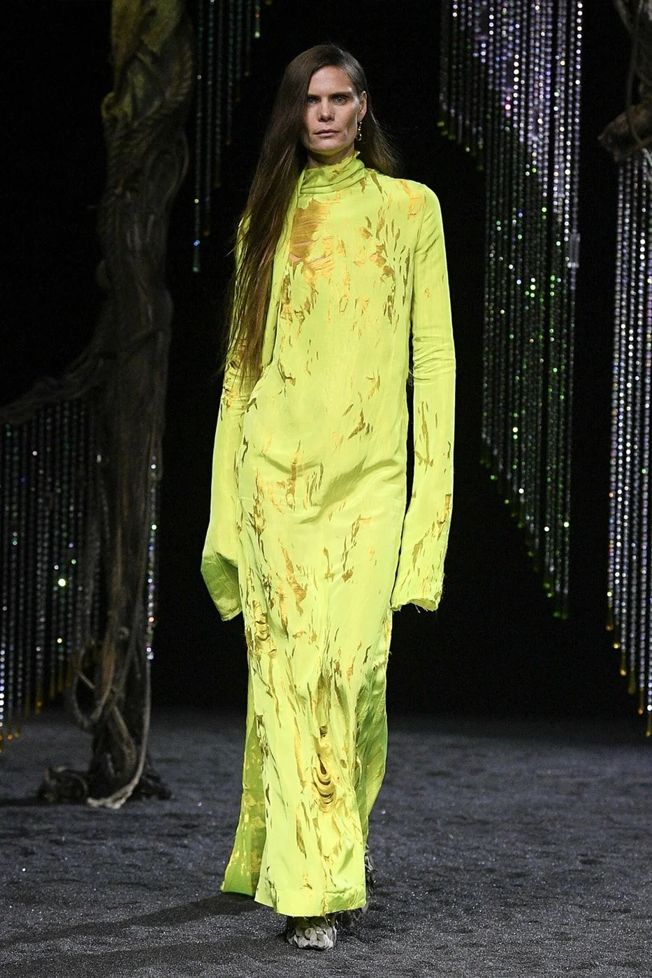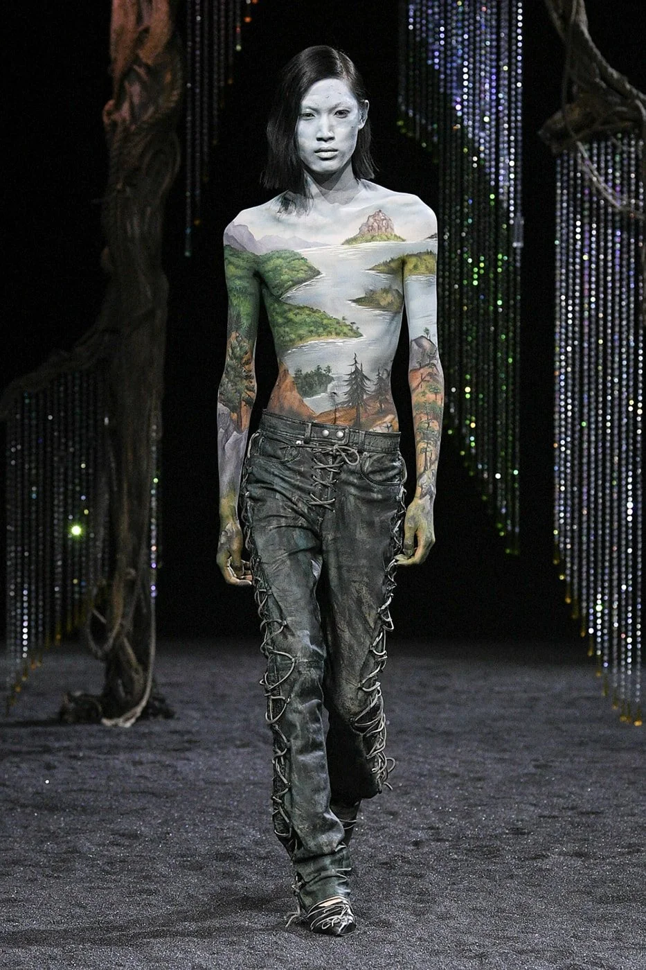 Fall/Winter 2023 is called Infinite Woods, inspired by the childhood of Acne Studios founder Johnny Johansson. Here he draws from imaginative worlds, fairy tales and mysticism related to Swedish forests. Pieces here are torn up, giving off a grunge vibe, in dark greens, browns and lots of black.